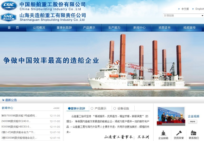 山海關造船重工有限責任公司(山造重工)由山海關船舶重工有限責任公司、河北省建設投資公司、秦皇島首秦金屬材料有限公司共同出資組建,2007年5月30日公司注冊成立,注冊資本11.8億元。山造重工是山船重工控股的子公司,山船重工是中國船舶重工集團公司所屬的國有大型一類企業。