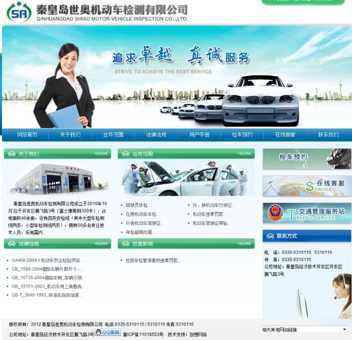 秦皇島世奧機動車檢測有限公司成立于2010年10月,位于開發(fā)區(qū)騰飛路3號(富士康南側(cè)300米),占地面積40余畝,設(shè)有四條安檢線(其中大型車檢測線兩條,小型車檢測線兩條),擁有50多名專業(yè)技術(shù)人員,采用國內(nèi)先進的自動化檢測儀器設(shè)備和管理系統(tǒng)。并有多名交警駐站負責(zé)安檢及車管業(yè)務(wù),是我市車管所管理下較大的機動車安檢技術(shù)機構(gòu)。