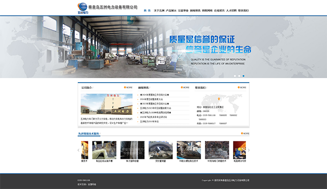 五洲電力專門致力于火力發電、核動力發電和水力發電的高新技術領域產品的研究開發、設計生產和推廣應用。公司自成立以來,一直堅持以“求實、求新、求學、求和”為集團公司的核心價值觀,通過自主開發為主,聯合開發為鋪,針對電廠的不同問題,開發出了適應電廠應用的專利產品,為電廠的節能降耗和安全生產做出了重要貢獻。 五洲電力有兩個生產區“秦皇島五洲電力設備有限公司杜莊工業聚集區廠區”和“葫蘆島綏中五洲電力技術有限公司綏中工業區廠區”。五洲電力以秦皇島五洲電力設備有限公司杜莊工業聚集區廠區為主導, 公司內部已形成了從產品開發、設計生產、質量檢驗、安裝調試和售后服務的良性運行體系,嚴格按ISO9001標準生產的產品,可為廣大用戶提供性能優良和技術先進的專利產品。………